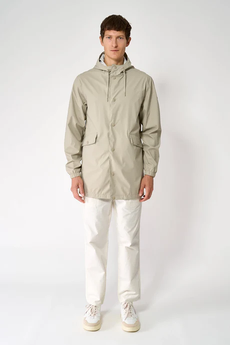 La chaqueta Kabut es un impermeable de corte estándar y diseño siempre contemporáneo, 100% impermeable. Está confeccionada con un tejido ligero de PU y cuenta con todas las costuras selladas para una protección superior. Los detalles de la prenda incluyen botones a presión en la parte frontal, bolsillos con solapas y un bolsillo interior en el pecho.